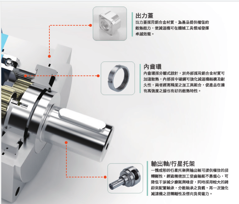 行星減速機(jī)在現(xiàn)代工業(yè)設(shè)備中常用于精密控制領(lǐng)域上,與伺服馬達(dá)搭...