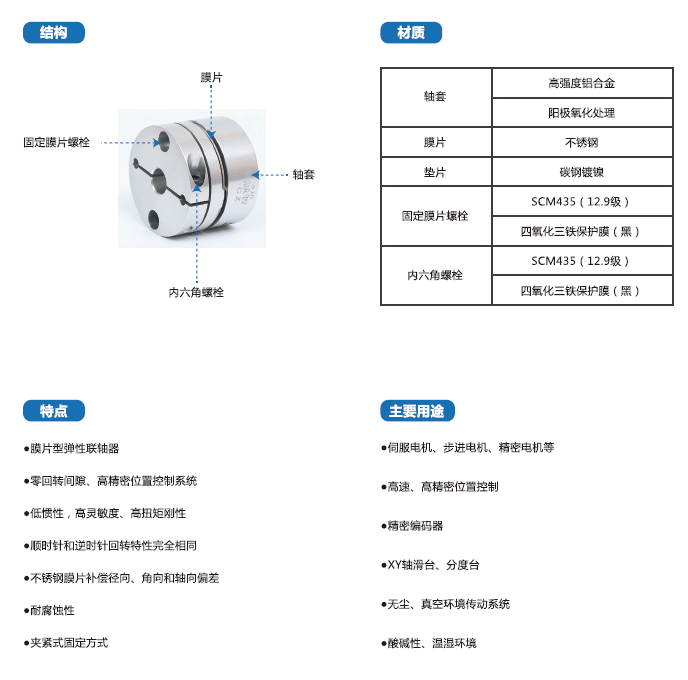 DFP-C系列聯(lián)軸器采用高強度鋁合金材料,經(jīng)過陽極氧化處理,廣泛用于伺服電機、步進電機、精密電機等。